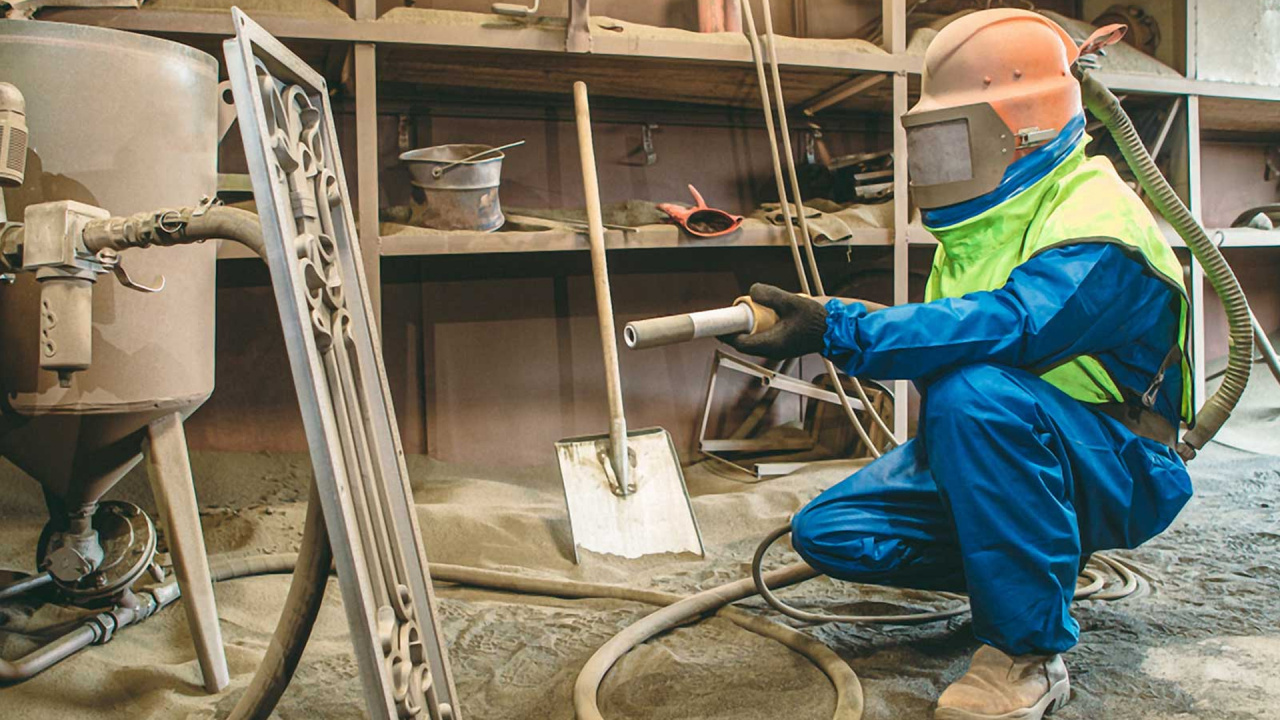 Оператор должен работать в защитном костюме, маске с подачей воздуха и перчатках. Пыль от абразива и металла опасна для дыхательных путей.
